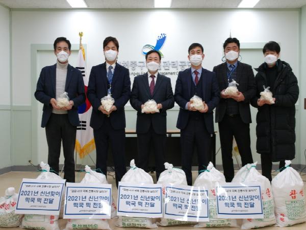 한편 매년 직원들과 시무식 행사에서 실시하던 “한마음 행복한 동행 신년 맞이 떡국 오찬”대신 지역경제 활성화 및 소상공인ㆍ골목상권 살리기에 부흥하고자 관내 전통시장에서 떡국떡을 구입하여 전 직원들에게 전달하고 공단 사업장 현장방문을 시작으로 본격 업무에 나섰다.