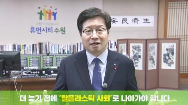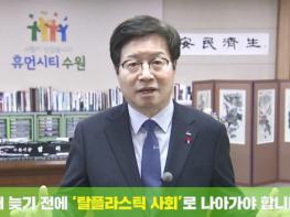 염태영 수원시장이 ‘플라스틱 줄이기, 고!고! 챌린지’에 참여해 “더 늦기 전에 ‘탈(脫) 플라스틱 사회’로 나아가야 한다”고 강조했다.