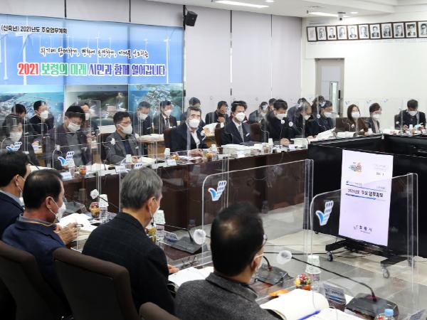 보령시는 지난 6일 시청 중회의실에서 김동일 보령시장과 본청 및 직속기관 과장 이상, 읍면동장, 공단?재단 대표 등이 참석한 가운데 2021년도 주요업무 보고회를 개최했다.