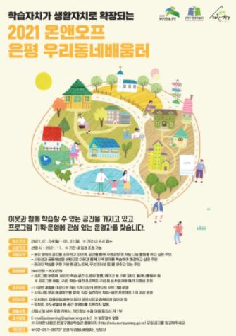 은평구와 은평구평생학습관은 ‘2021온앤오프 은평 우리동네배움터’를 1월 31일까지 모집한다.