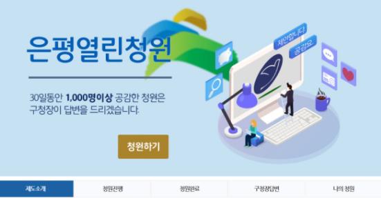 은평구가 구민 1,000명의 청원에 구청장이 답하는 ‘은평열린청원’을 운영한다고 밝혔다. 지난 12월 30일 은평구청 홈페이지 내 ‘은평열린청원’ 게시판을 개설하고 본격적인 운영을 시작하였다.
