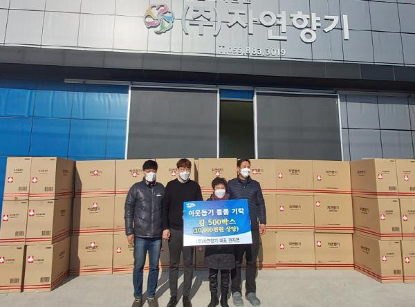 새해 들어서도 농업회사법인 (주)자연향기(대표 권자연)가 1000만원 상당의 맛김 500박스를 기탁해 13개 읍·면의 저소득층에 골고루 전달했다.