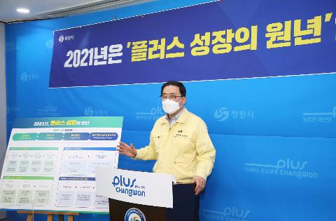 허성무 창원시장은 7일 오전 11시 시청 프레스센터에서 열린 신년 기자회견에서 2021년 ‘플러스 성장의 원년’의 역점 시정운영 방향을 밝히며 이같이 말했다.