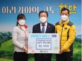이에 조근제 함안군수는 “어려운 이웃들을 위해 소중한 성금을 기탁해 주셔서 감사드린다”며, “성금은 힘든 시기를 보내고 있는 관내 소외계층에 잘 전달하겠다”고 화답했다.