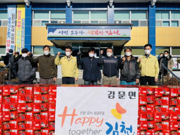 김천시 감문면 이장협의회는 1월 6일 관내 소외된 이웃이 따뜻한 겨울을 보낼 수 있도록 라면 150박스를 기부하였다.