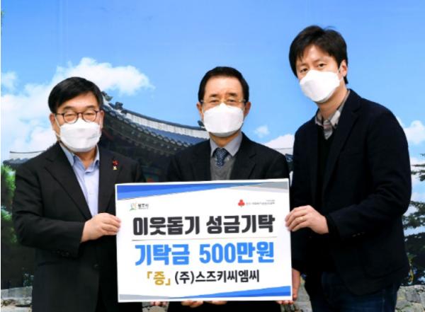 또한, 이날 오포읍에 위치한 이륜자동차 및 부품 무역업체인 ㈜스즈키씨엠씨 강정일 대표도 광주시에 어려운 이웃을 위해 성금 500만원을 전달했다.