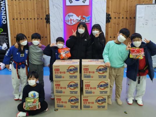 라면은 힘쎈 어울림 태권스쿨 아이들이 연말‘라면트리 기부행사’를 실시해 마련됐다.