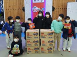 익산시 신동 힘쎈 어울림 태권스쿨은 7일 익산행복나눔마켓?뱅크를 방문해 아이들이 고사리손으로 함께 모은 라면 303개를 어렵고 소외된 이웃들을 위해 기탁했다.