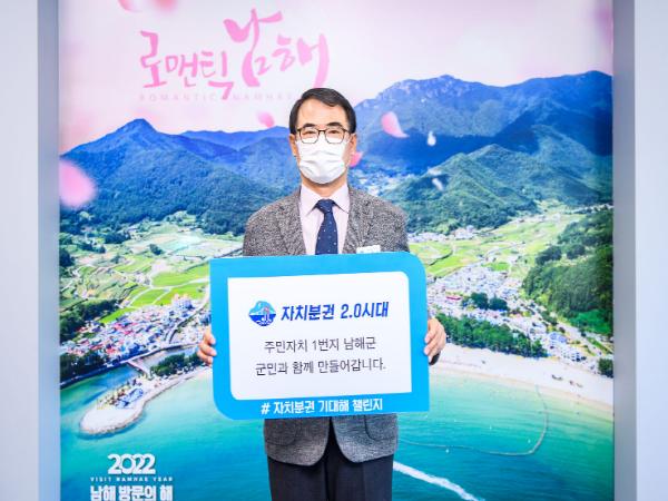장충남 남해군수가 6일 ‘자치분권 기대해 챌린지’에 참여하며 “군민과 함께 주민자치 1번지 남해군을 만들어 가겠다”고 다짐했다.