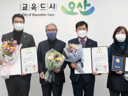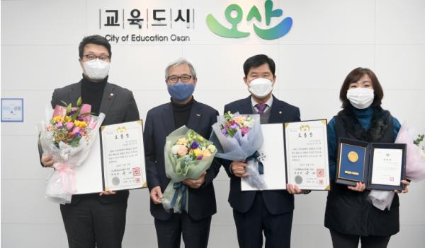 조창복 자문위원은 전임 제19기 회장으로 지역사회 발전과 평화적 통일기반 조성에 이바지 해왔고, 장인수 고문은 현재 오산시의회 의장으로서 활발한 의정활동과 함께 제18기~제19기 고문으로 평화통일 공감대 확산 활동에 앞장섬으로써 평화와 번영의 한반도를 만들어 가는 데 기여했다.