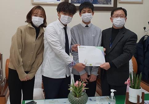 강원 태백시 상장중학교 2학년 3반 학생과 하초연 담임선생님은 1월 6일 태백시청을 방문하여 희망2021 나눔캠페인 이웃돕기성금 315,970원을 기탁하였다.