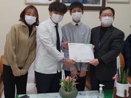 하초연 선생님은 “2-3반 학생들이 자발적으로 코로나 19로 어려움을 겪는 분들에게 조금이라도 나눔을 실천했으면 좋겠다면서 학생들 스스로 자신들의 용돈을 모아서 성금을 마련했으며, 학생들의 메시지도 전해주고 싶어서 함께 방문하게 되었다”고 전했다.