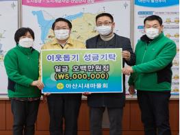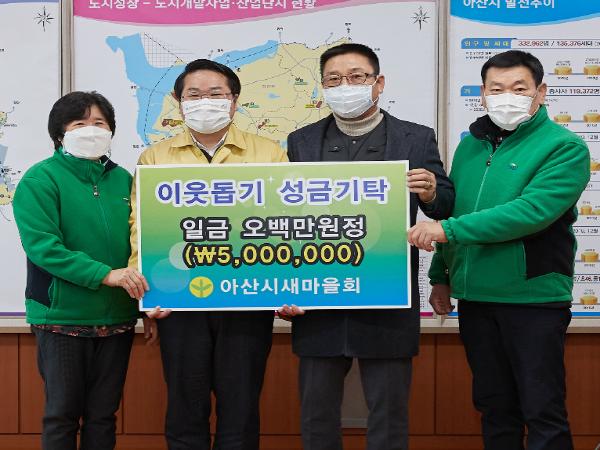 아산시 새마을회가 7일 아산시청을 방문해 취약계층 후원을 위한 기부금 500만원을 전달했다.