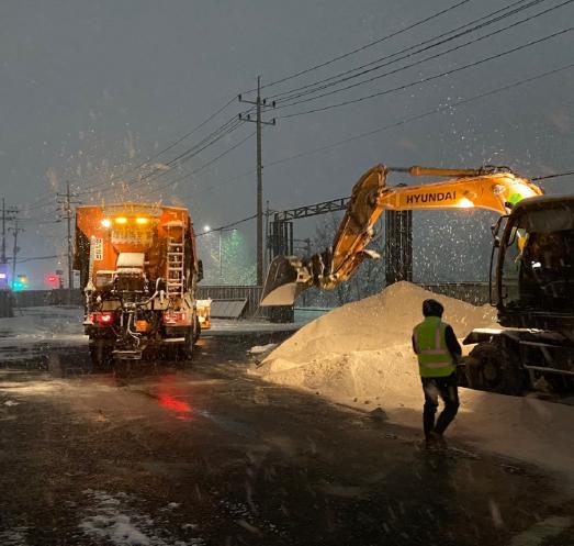 제설작업은 6일 저녁 9시부터 7일 오전 7시30까지 총 4차례에 걸쳐 인력 382명, 장비 192대, 친환경염화칼슘 2,000여 톤을 활용하여 주·간선도로 제설작업을 시행했다.