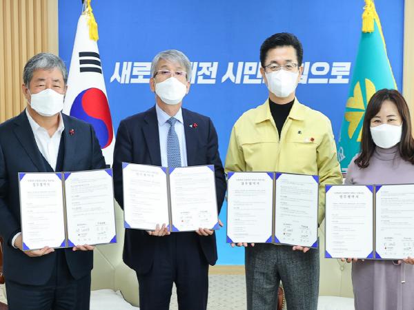 협약식에는 허태정 대전시장, 윤순기 하나은행 충청영업그룹 총괄대표, 정태희 대전 사회복지공동모금회장, 박미애 초록우산 어린이재단 대전지역본부장 등 4개 기관 관계자가 참석했다.