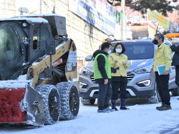 또한 7일 오전 민간장비 18대를 추가로 긴급 투입하고 필수 인력을 제외한 모든 공직자를 50개 동에 배치, 버스정류장과 도로 주변 인도, 골목길 이면도로 등에서 제설작업을 실시하고 있다.