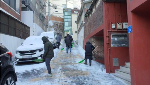 한편, 지난 6일 저녁 마포구 서강동의 ‘창전동삼성아파트’에서는 눈이 쌓이고 있다는 아파트 안내방송이 나오자 주민 50여 명이 힘을 모아 아파트와 주변 도로의 눈을 직접 치워 이웃을 배려하는 훈훈한 모습을 보여줬다.