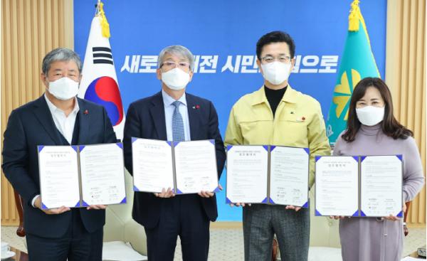 협약식에는 허태정 대전시장, 윤순기 하나은행 충청영업그룹 총괄대표, 정태희 대전 사회복지공동모금회장, 박미애 초록우산 어린이재단 대전지역본부장 등 4개 기관 관계자가 참석했다.