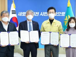 대전시는 7일 오후 온통대전 운영대행사인 하나은행, 대전 사회복지공동모금회, 초록우산 어린이재단 대전지역본부와 함께 대전시청 응접실에서 ‘온통대전 온통희망 장학금 지원’사업 추진을 위한 업무협약식을 가졌다.