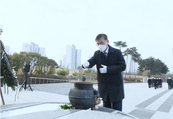 이날 순국선열과 호국영령들의 숭고한 넋을 위로하기 위해 헌화와 참배를 한 정하영 시장을 비롯한 참석자들은 신축년(辛丑年) 새해의 새로운 각오와 결의를 다짐했다.