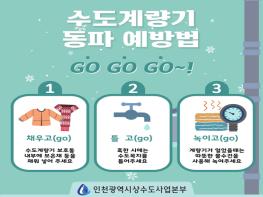 박영길 인천시 상수도사업본부장은“각 세대에서도 계량기 동파방지에 협조해 주시길 당부드리며, 겨울철 수도계량기 동파로 인한 시민불편 최소화를 위해 최선을 다하겠다”고 전했다.