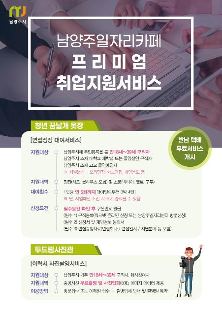 한편, 남양주시는 면접정장 대여 외에도 이력서 사진촬영 등의 대면 서비스와 VR면접교육과 같은 비대면 서비스를 제공하고 있으며, 취업역량 강화를 위한 취업컨설팅, 현직자 직무멘토스쿨 등 다양한 프로그램을 남양주고용복지플러스센터 내 일자리카페에서 운영하고 있다.