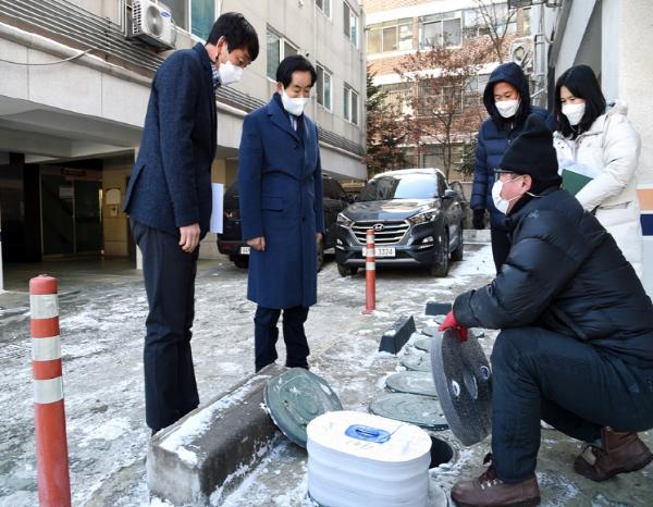 수도계량기, 보일러 배관은 헌 옷 등으로 보온하여 주시고 장기간 외출 시에는 온수를 약하게 틀어 동파를 방지해 주시기 바랍니다.