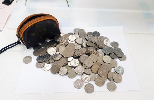 이 동전 지갑에는 100원, 500원짜리 동전 20,600원의 조그만한 지갑에 가득 들어 있었다.
