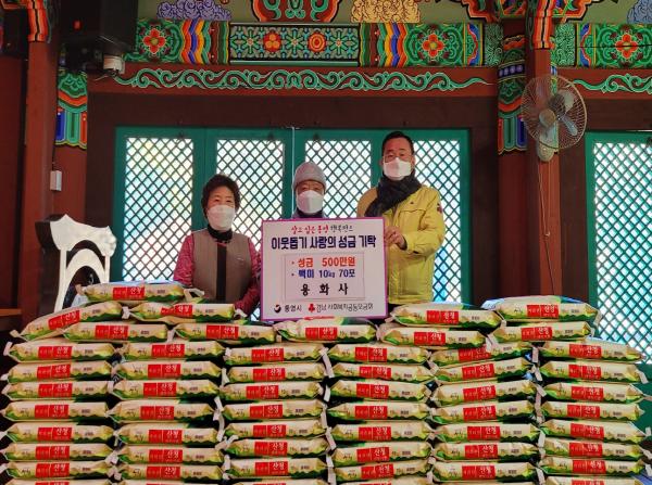 대한불교조계종 용화사는 1월 7일 신축년 새해를 맞이하여 저소득층에 전달해 달라며 신도들의 따뜻한 정성으로 준비한 성금 500만원과 백미(10㎏) 70포(250만원 상당)를 통영시에 기탁했다.