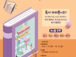 독서마라톤 대회는 개인별 독서량에 따라 코스를 설정하는 시민 독서 운동으로, 책 1페이지당 1m로 환산해 3km, 5km, 10km, 20km, 풀코스 가운데 선택하면 된다.