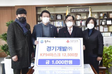 경기개발(주)는 7일 코로나19 예방을 위한 1,000만 원 상당의 KF94마스크 12,500장을 원주시에 기탁했다.