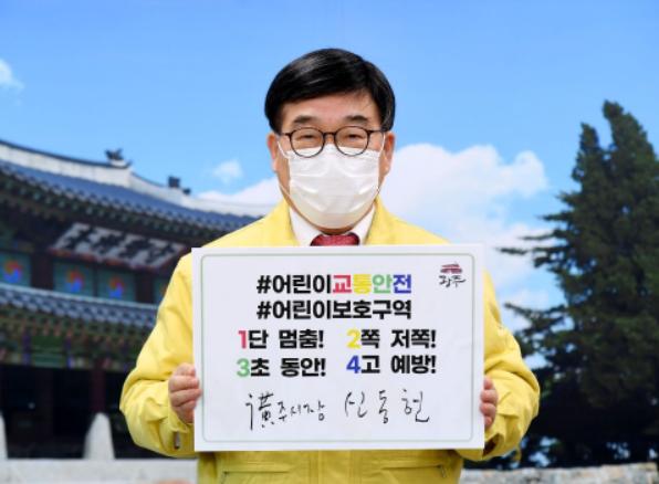 광주시 신동헌 시장은 8일 어린이 보호 최우선 문화 정착과 어린이 교통사고 예방을 위한 ‘어린이 교통안전 릴레이 챌린지’ 캠페인에 동참했다.