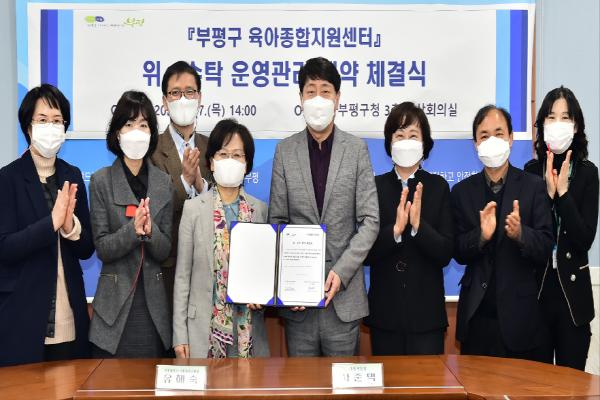 부평구는 지난 7일 구청 영상회의실에서 재단법인 인천시 사회서비스원과 부평구 육아종합지원센터 운영 위·수탁 계약을 체결했다.