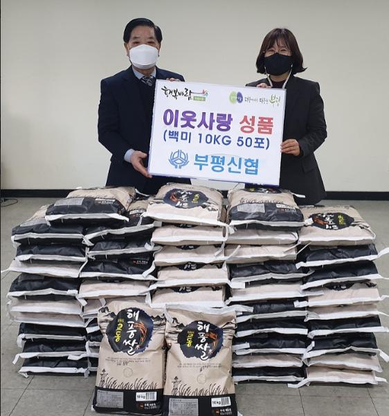부평구부평4동 행정복지센터는 8일 부평신협 본점으로부터 이웃의 따뜻한 겨울나기 지원을 위한 이웃돕기 성품 백미 500kg을 전달받았다.