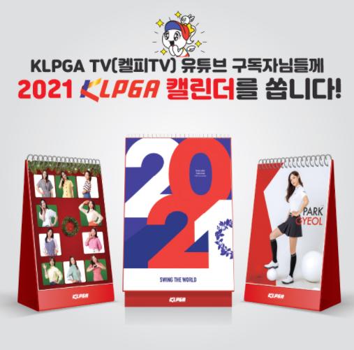 한국여자프로골프협회가 신년을 맞아 제12대 KLPGA 홍보모델의 화보 사진이 담긴 캘린더를 제공하는 ‘켈피TV 유튜브 구독자 이벤트, 2021 KLPGA 캘린더를 쏩니다!’를 실시한다.