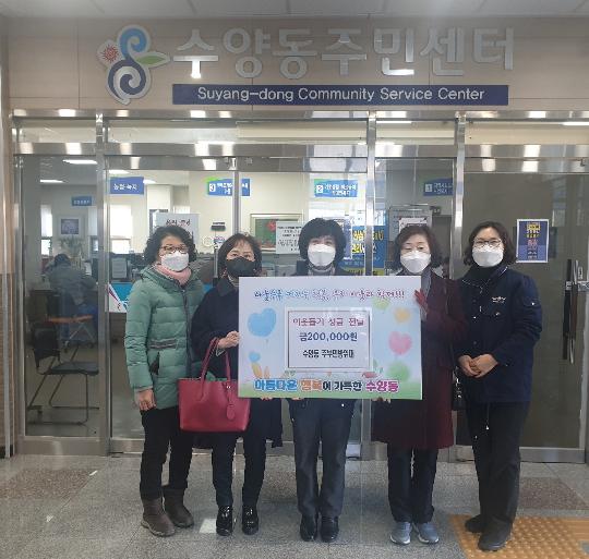 지난 1월 7일 수양동 주부민방위대는 수양동주민센터에 어려운 이웃을 위해 써달라며 성금 20만원을 기탁했다.