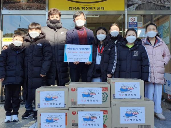 이은한 관장은 “도장 아이들이 이웃과 나누는 기쁨을 배울 수 있도록, 아이들이 꾸준히 모은 라면과 성금을 기탁하게 되었다.”며 “힘든 겨울을 보내고 있을 지역의 어려운 이웃을 위해 사용되길 바라며, 앞으로도 지역 사회 사랑나눔을 아이들과 꾸준히 실천하겠다.”라고 다짐을 밝혔다.