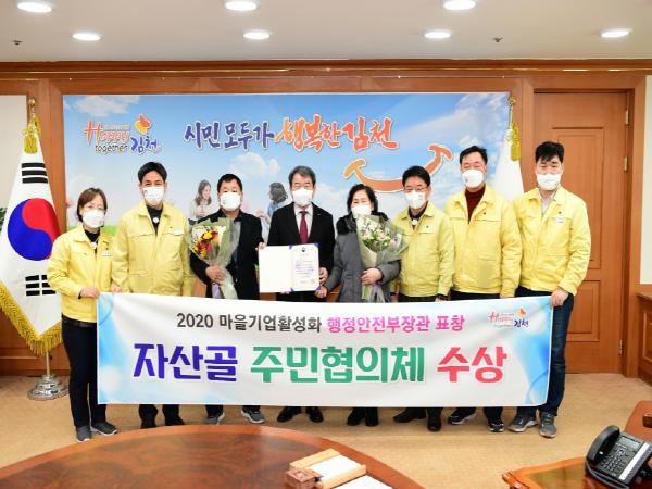 김천시는 자산골 주민협의체가 마을기업 육성 및 발전 유공을 인정받아 행정안전부장관 표창을 수상했다고 8일 밝혔다.