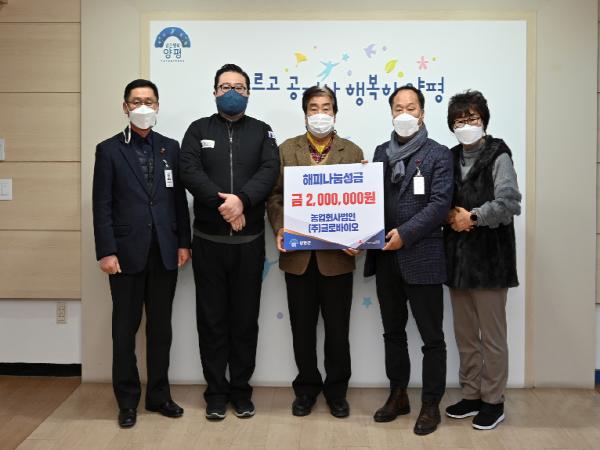 지난 7일, 바르게살기 양평군협의회(이사 이대규)에서 해피나눔성금으로 마스크 1,000매(400만원상당)를, 농업회사법인 ㈜글로바이오(대표 장진욱)에서 해피나눔성금 200만원을 기탁했다.
