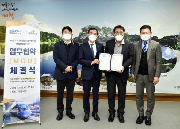 제천시와 코레일관광개발(주)은 지난 7일 제천시청에서 업무협약을 체결하고 철도를 활용한 관광산업 활성화에 협력하기로 했다.