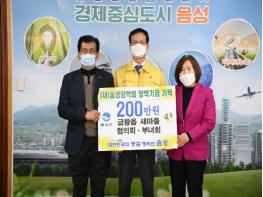 음성군 금왕읍 새마을협의회·부녀회(협의회장 안성배, 부녀회장 박갑연)에서 8일 음성군청을 방문해 (재)음성장학회(이사장 조병옥)에 장학금 200만원을 기탁했다.
