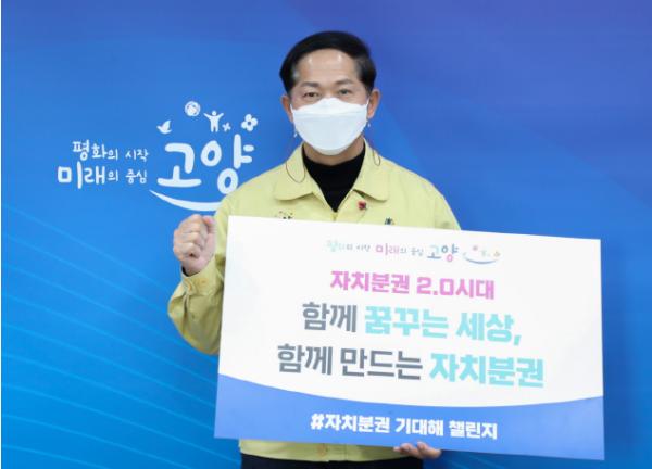 이재준 고양시장이 8일 ‘자치분권 기대해’ 챌린지에 동참해 자치분권의 미래에 시민이 함께해주기를 호소했다.