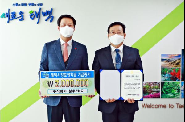 지난 2010년 12월 설립된 청우ENC는 엔지니어링과 측량업을 하는 기업으로 2011년부터 매년 태백시에 새해맞이 장학금을 기탁해 오고 있다