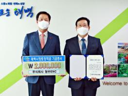 ㈜청우 ENC(대표 최이수) 신명교 전무가 1월 8일 태백시청을 찾아 지역 인재 육성을 위해 써달라며 태백시향토장학금 200만 원을 기탁했다.