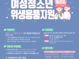 시는 여성청소년 보건위생물품(생리대) 바우처 지원사업을 추진해 여성청소년에게 보건위생물품 구매비용을 지원할 수 있도록 이달부터 신청 받는다.