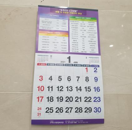 광명시는 하안·소하노인종합복지관에서 2021년 어르신 건강 달력 2000부를 만들어 어르신들에게 전달했다고 밝혔다.
