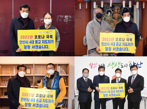 지난 7일 진행된 캠페인은 코로나19 확산 방지를 위한 안산시 4대 종교계의 모범적 방역 실천 다짐과 2021년 신축년을 맞아 시민들에게 희망의 메시지를 전달하기 위해 자발적으로 기획됐다.