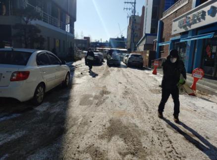 이날 회원들은 눈길 안전사고를 예방하고 주민 통행 불편을 최소화하기 위해 골목길 등을 돌며 염화칼슘 50포를 살포했다.