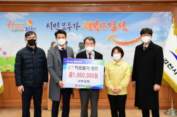 김천시는 김천서부교회에서 이웃돕기 성금 100만원을 기탁하며 ‘희망2021 나눔캠페인’에 참여했다고 밝혔다.