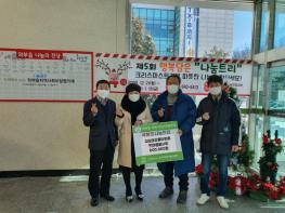 남양주시 와부조안행정복지센터(센터장 심원철)는 지난 8일 와부읍 대성코오롱아파트 한마음봉사회(회장 김정석)에서 후원금 60만원을 와부읍 지역사회보장협의체(위원장 김철환)‘나눔트리’에 기탁했다고 전하였다.